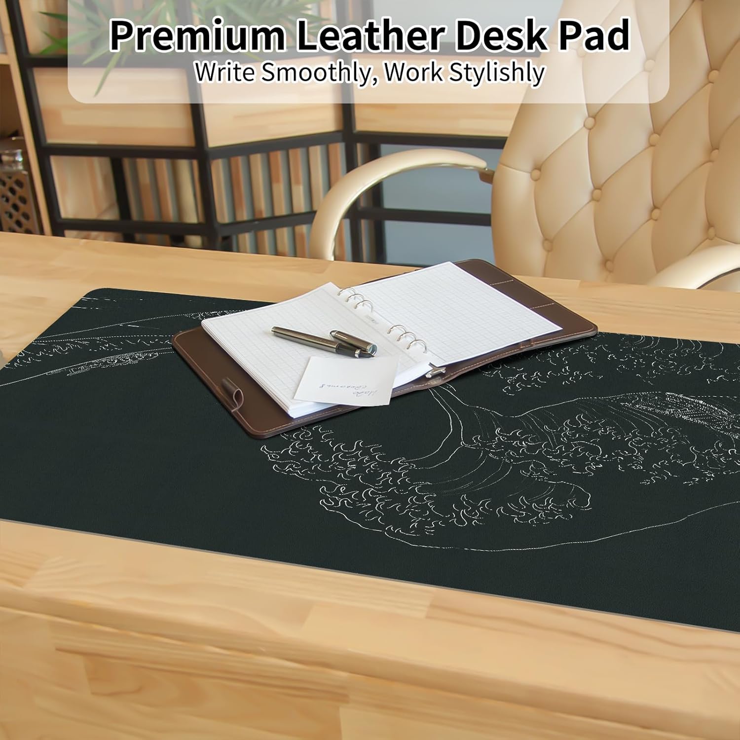 Bloss Japanese Sea Wave Desks Mat,Anime Black Large Mouse pad,Kanagawa Gaming Desk Pad Mat,Desk Blotter Mat,Waterproof Computer Laptop Keyboard Desk Protector Mat for Office/Home/Gift,31.5" x 15.7"