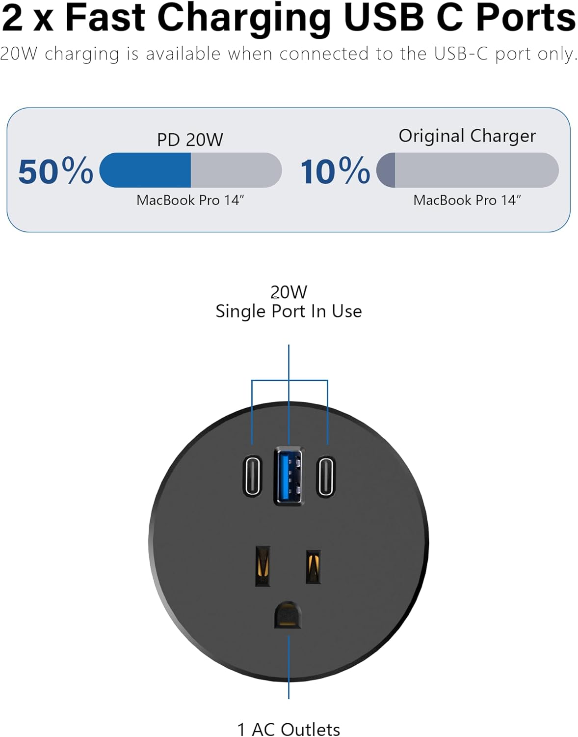 - Creative Recessed Desktop Design Space Saving: This unique desk power grommet outlet get rid of hefty adapters and messy plugs. Ideal for charging multiple devices at the home/office/school.