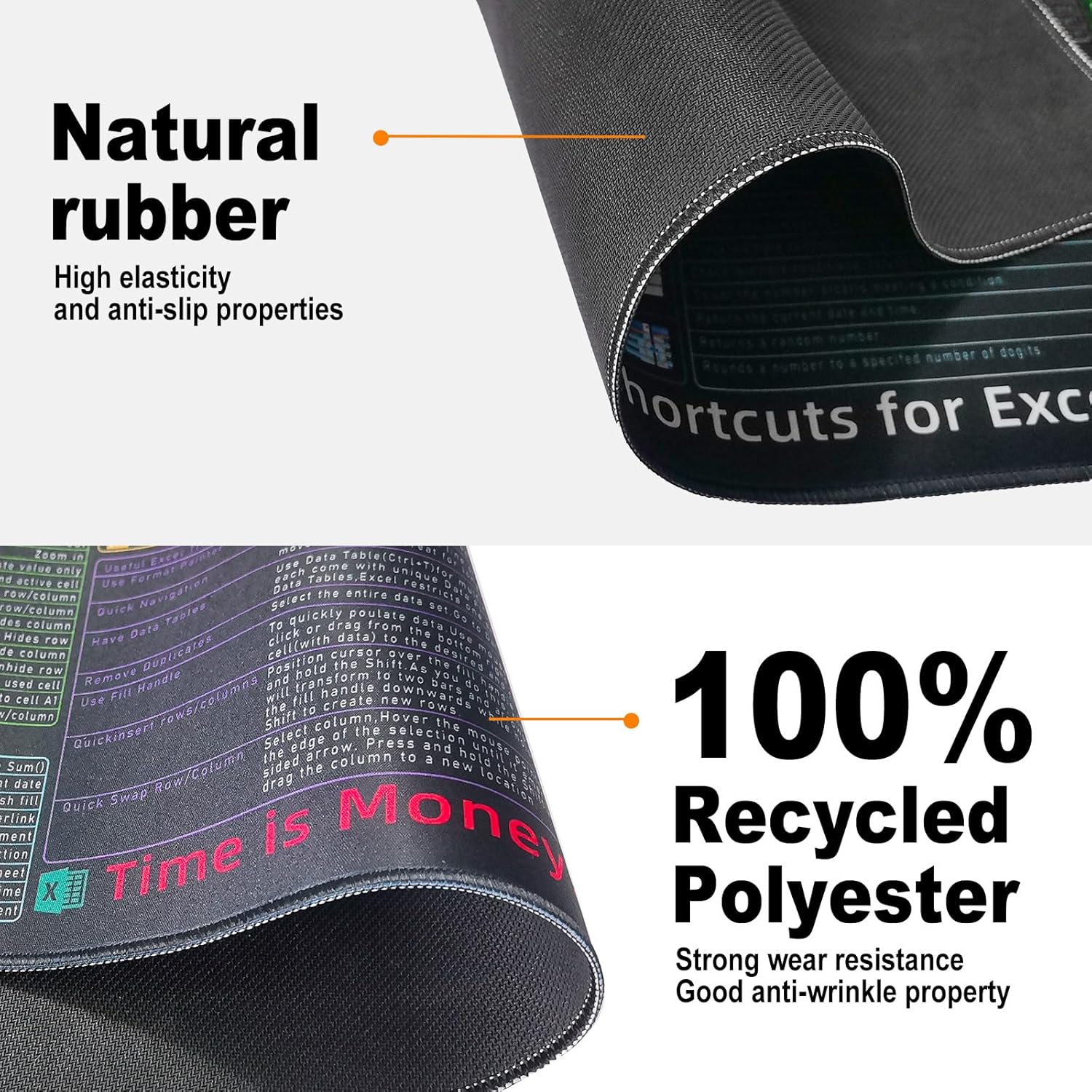Excel Cheat Sheet Desk Pad-Large Mouse Pad for The Accountant,Office Accessories, Mat for Microsoft Office,Non-Slip Stitched Edge