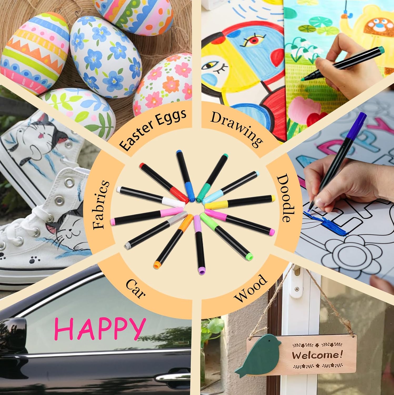 - Versatile Uses: Liquid chalk markers are perfect for writing and drawing on doddle glow boards, acrylic magnetic dry erase boards, first day of school signs, acrylic calendar boards, whiteboards, planning boards, menu boards, or mirrors. Vibrant colors effectively categorize information and highlight key points, while easy erasure makes daily planning fun. They're also perfect for decorating Easter eggs and creating party banners at birthday celebrations.