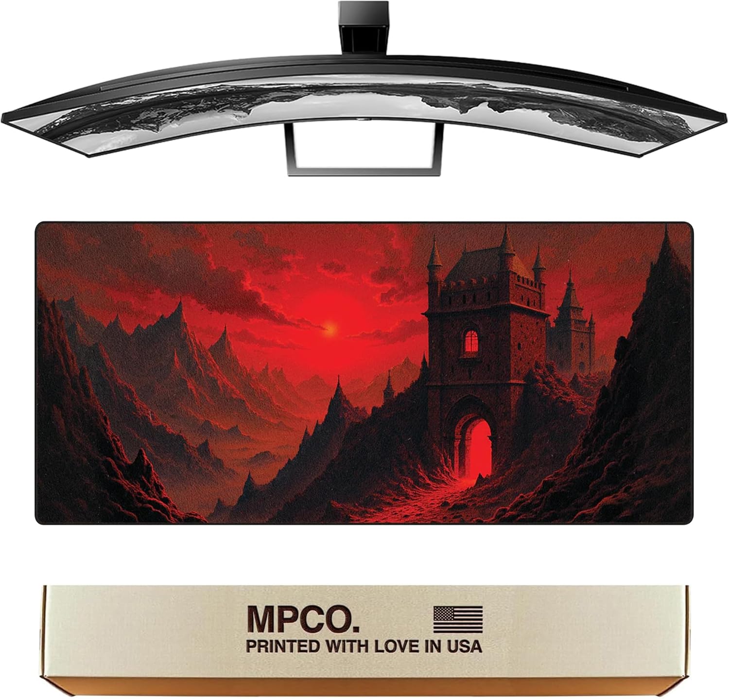 MPCO. Dark Fantasy Large Gaming Desk Pad - 36" x 17" Duraglyde Fabric The Scarlet Passage Desk Mats - Non-slip, Washable, Smooth Glide for Precision Gaming & Work
