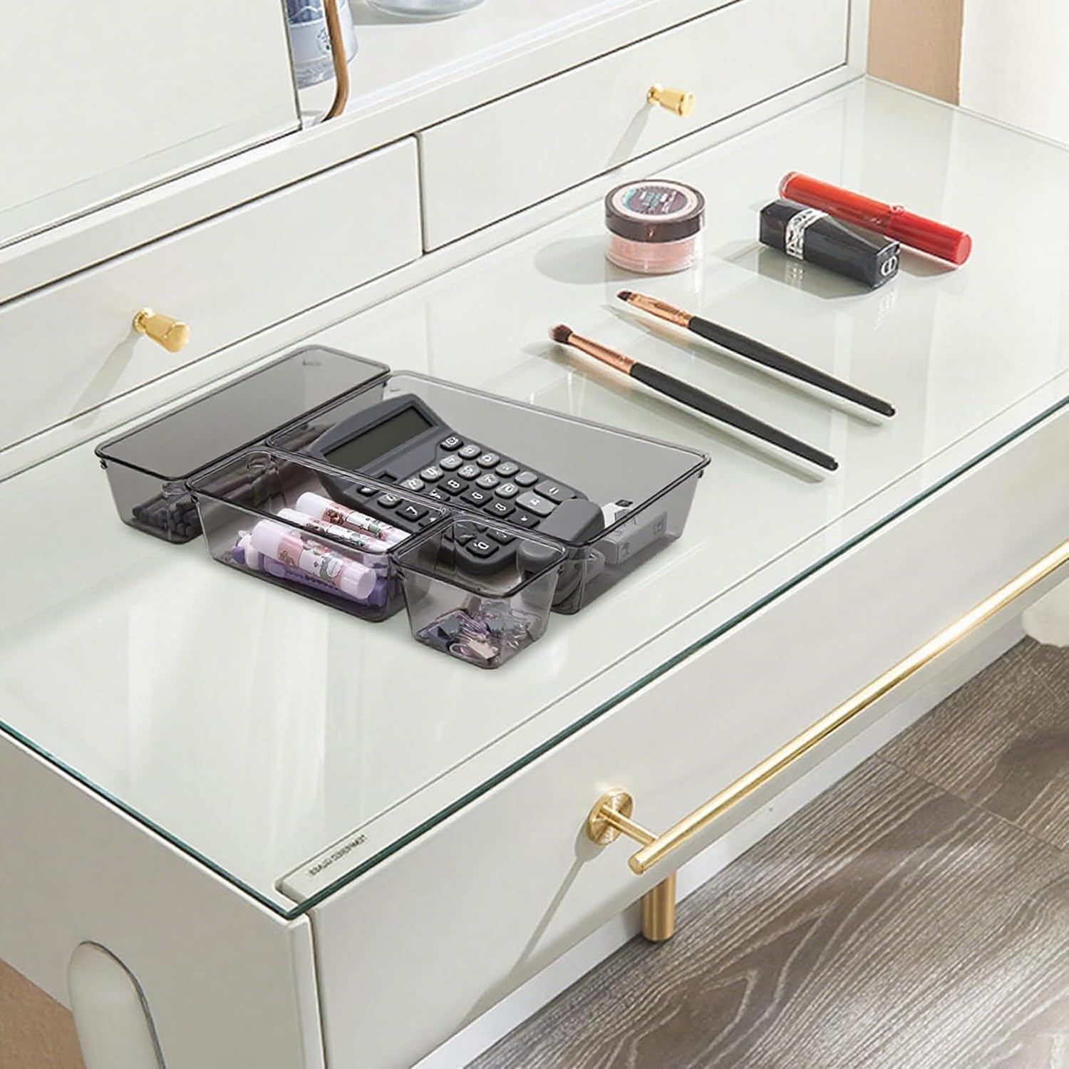- 【MULTIFUNCTIONAL DESK DRAWER ORGANIZER TRAYS】 Every vanity trays for bathroom is perfect for placing in various drawers in your home, such as dresser, bathroom, kitchen, office drawers, craft room, ideal for organizing cosmetic products, make-up tools, hair accessories, jewelry, pins, office supplies, craft supplies, tableware and so on.