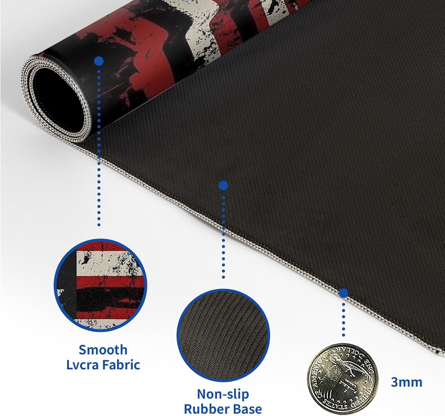 • ♄[Highly Durable Design]:Our American Flag mouse pad long with delicate and durable stitched edges, which can effectively prevent fray and degum.It also enhances the aesthetic and lifespan of the mouse pad.You can use it easily.