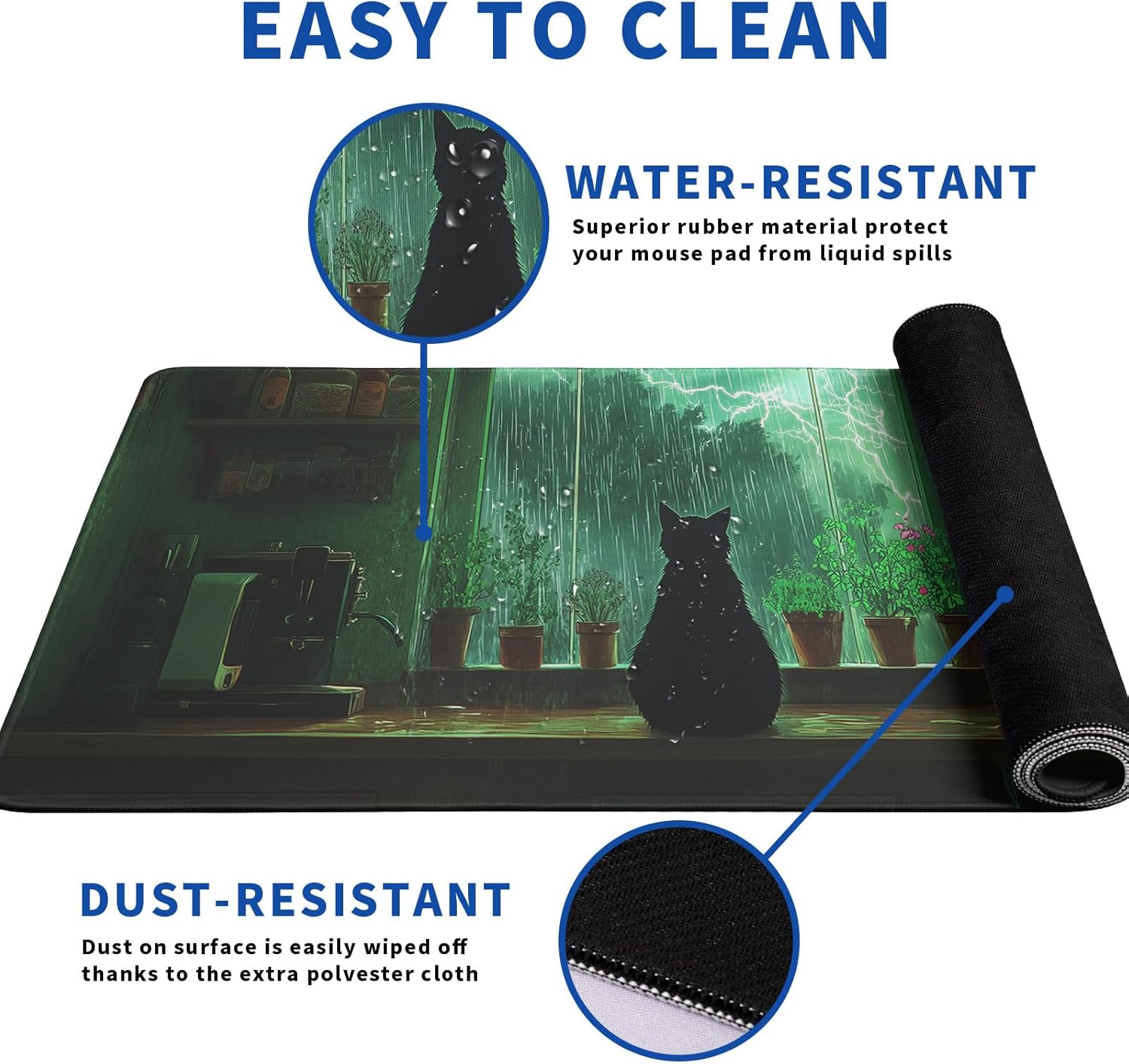 - ā„[Easy To Clean]:This large Green Black Cat mouse pad for desk, Spill-proof coating protects your desktop from spilled water, Drinks, Ink and the other liquid spilled liquid or other accidents. Easy to clean, Just wipe with a wet cloth or paper, Does not fade and can be washed and foldable without leaving creases, Easy to carry.
