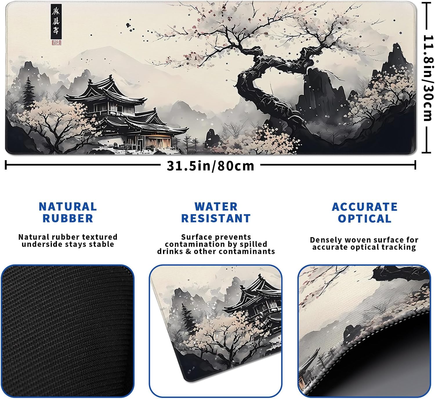 Japanese Mouse Pad, Large Japanese Desk Mat, XL Anime Gaming Keyboard Mat, Non-Slip Rubber Base, Big Extended Desk Protector for Office and Home, 31.5”x11.8”