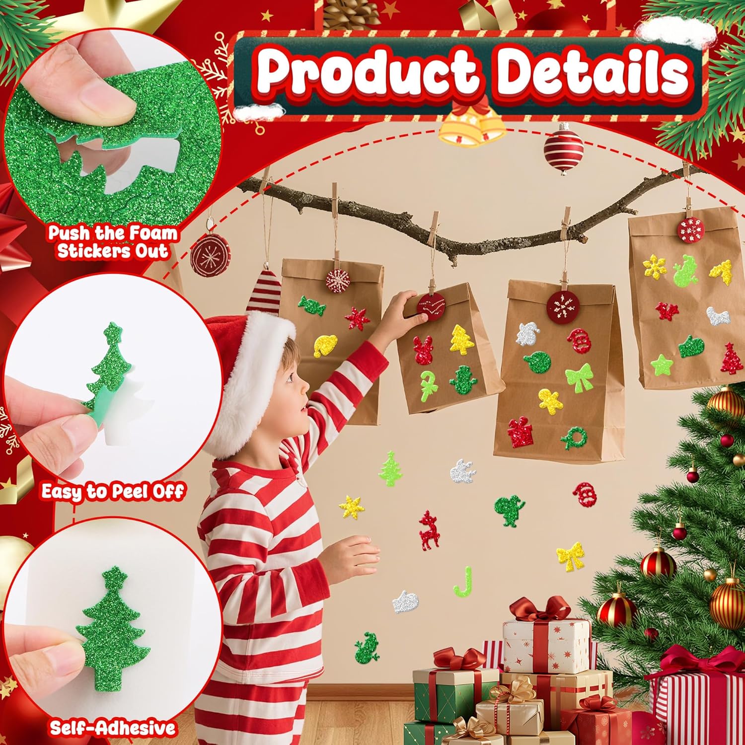 Foam Stickers Glitter Colorful Self Adhesive Stickers, Sticker for Kids Crafts Arts Supplies Scrapbooking DIY Greeting Card Envelopes Home Decor(Christmas Style)