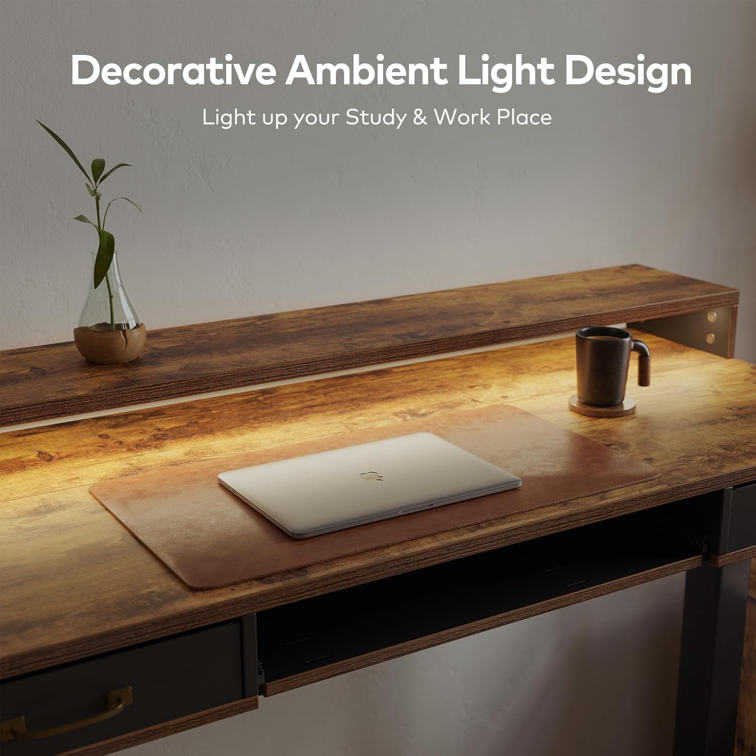 - Spacious Work Space: The top shelves with double drawer design expertly make your desktop tidier and helps you head up when you put your screen on it.